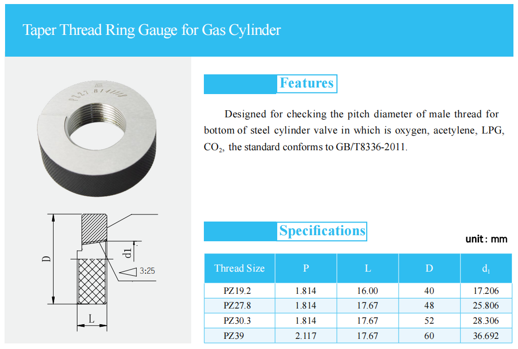 PRODUCT current location:Home > PRODUCT > PZ-W Taper Thread Ring Gauge for Gas Cylinder