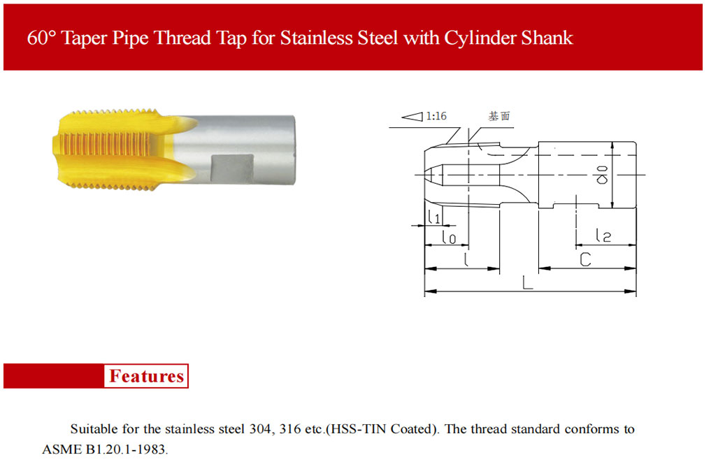 PRODUCT current location:Home > PRODUCT > Taper Pipe Thread Tap for Stainless Steel with Cylinder Shank