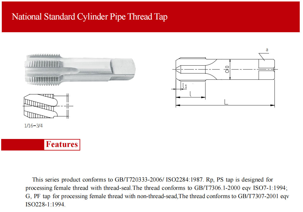 PRODUCT current location:Home > PRODUCT > National Standard Cylinder Pipe Thread Tap