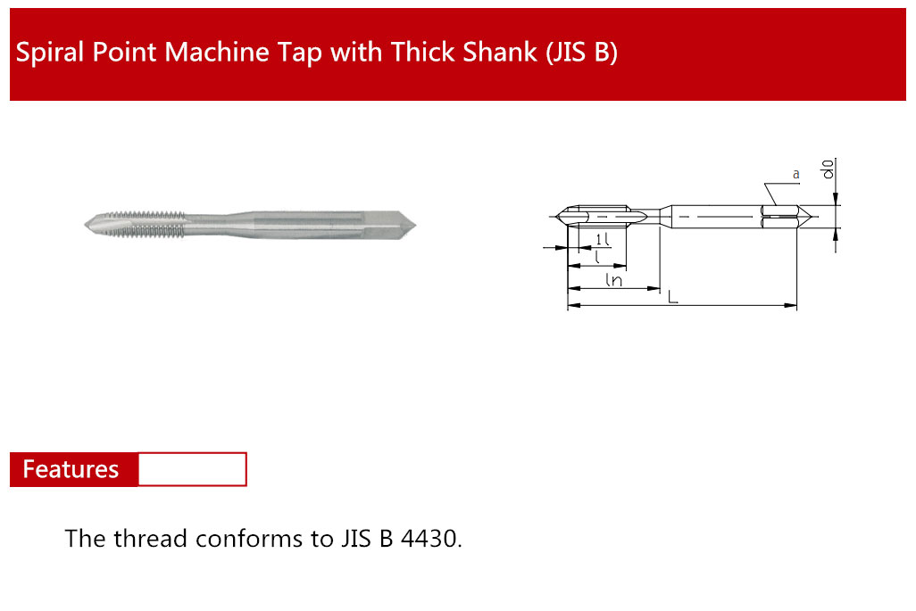 PRODUCT current location:Home > PRODUCT > Spiral Point Machine Tap with Thick Shank (JIS B)
