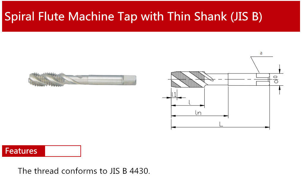 PRODUCT current location:Home > PRODUCT > Spiral Flute Machine Tap with Thin Shank (JIS B)