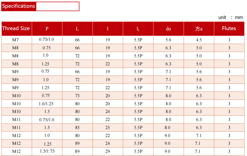 Previous article:Spiral Flute Machine Tap with Thin Shank (Short Thread) Next article:Spiral Flute Machine Tap with Thick Shank (Short Thread)