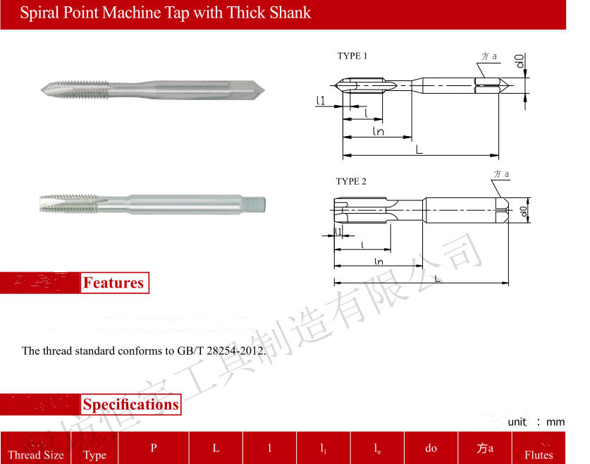 PRODUCT current location:Home > PRODUCT > Spiral Point Machine Tap with Thick Shank