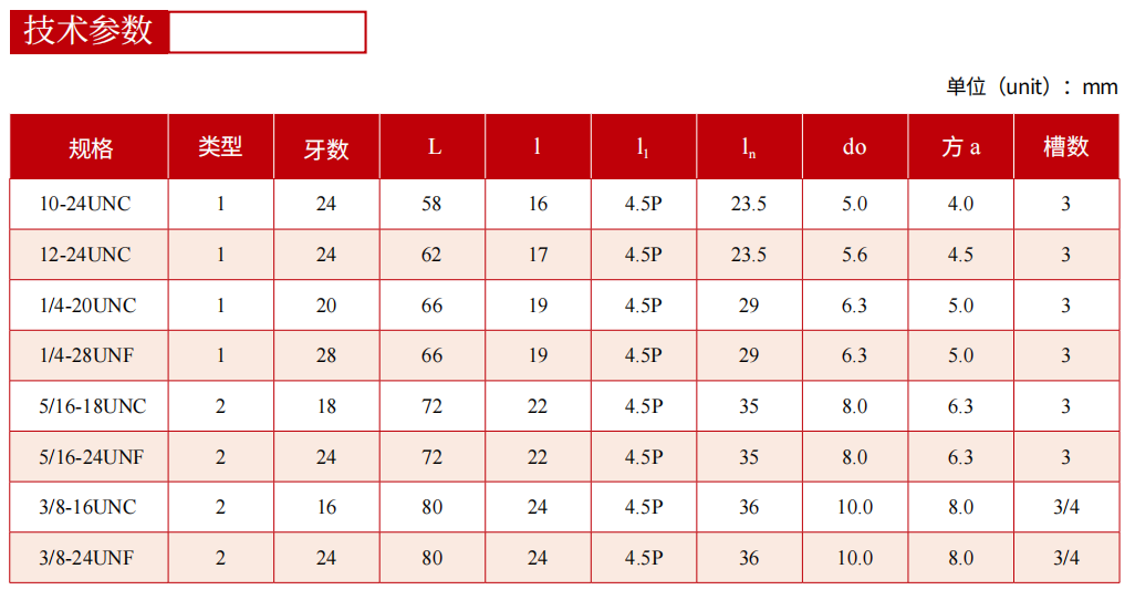 該系列產(chǎn)品適用于機(jī)械結(jié)構(gòu)中緊固連接零件上內(nèi)螺紋的加工,加工出的螺紋符合美國聯(lián)邦螺紋標(biāo)準(zhǔn)手冊H28-ASME B1.1-1989中UNC/UNF統(tǒng)一制粗牙、細(xì)牙螺紋的要求。